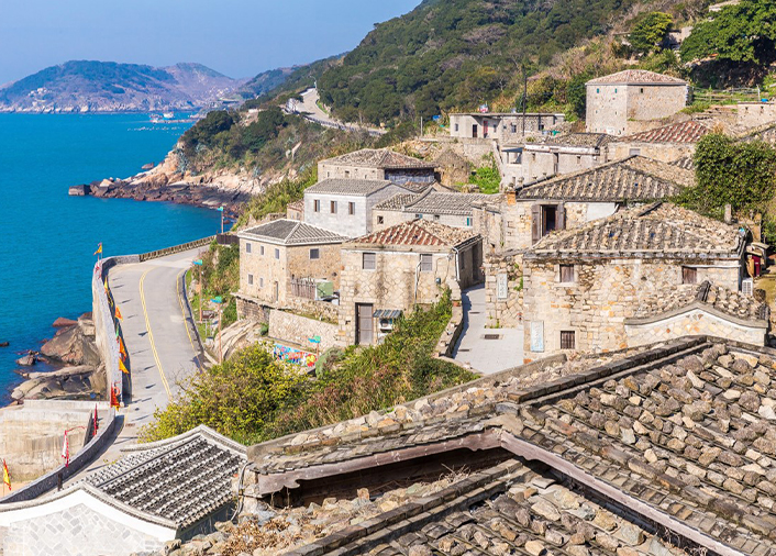 芹壁村被譽為「地中海風情小村」,石頭屋依山面海錯落而建,呈現獨特的閩東聚落景觀。這裡保存完整的花崗岩古厝,牆面刻畫歲月痕跡,遠望則是湛藍海岸線與對岸的閩江口。漫步石階巷弄間,能感受濃厚的古樸氣息與閩東文化。村內還有浪漫的「芹壁天主堂」、文青小店與觀海咖啡座,是拍照與放鬆的熱門景點。無論日出或夕陽,芹壁村都展現不同層次的靜謐美感,是來馬祖必訪的經典代表。