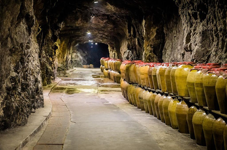 八八坑道原為軍用酒窖,後來由馬祖酒廠接手保存與使用。坑道深入花崗岩山體,全年恆溫恆濕,是儲藏高粱酒的理想環境。整齊排列的酒甕散發著淡淡酒香,氣氛莊嚴神秘。參觀時彷彿置身時光隧道,是結合戰地遺跡與酒香的特色景點。
