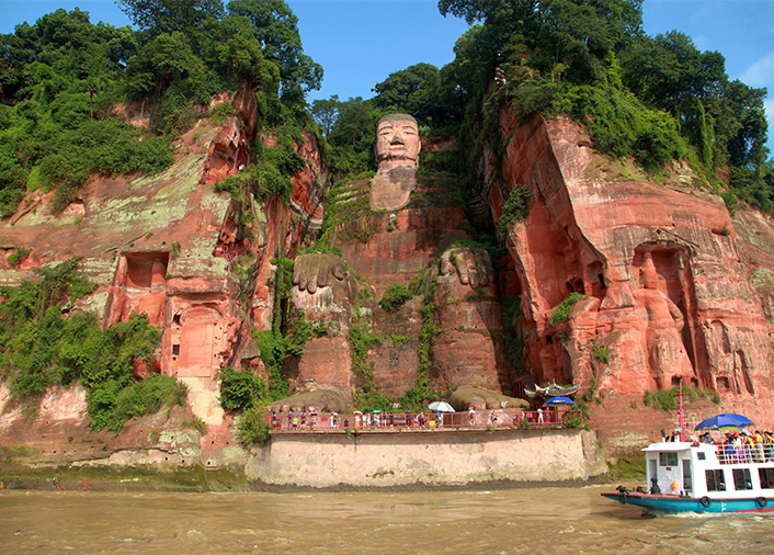 樂山大佛通高 71 公尺,是世界上最大的石刻坐佛。乘遊船可從江面完整仰望大佛全貌,氣勢磅礴。夜幕降臨,大佛在燈光映照下金光閃耀,更添莊嚴與神秘。遊船之旅融合自然美景與宗教文化,是體驗樂山的最佳方式。