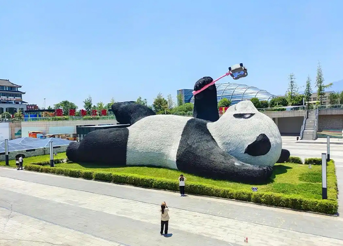 成都【仰天窩自拍熊貓廣場】是近年爆紅的人氣地標,一隻仰躺舉著手機的巨型熊貓雕塑,模樣呆萌又療癒,彷彿正和遊客一起自拍。廣場位於市區精華地段,結合藝術裝置、城市景觀與熊貓文化,成為旅人到成都必拍的打卡熱點。白天可近距離欣賞細節設計,夜晚燈光映襯更添可愛氛圍,輕鬆感受成都悠閒又幽默的城市魅力。