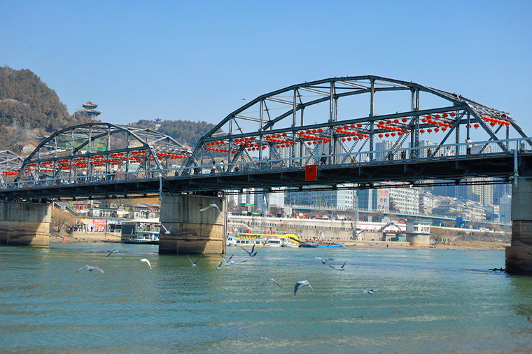 橫跨黃河之上的百年鐵橋,是蘭州最具代表性的歷史建築之一,亦被稱為「黃河第一橋」。建於清末時期,橋身由德國設計並採用鋼架結構建造,氣勢宏偉。橋長逾兩百公尺,連接蘭州南北兩岸,是早年重要的交通樞紐。如今橋上行人悠然漫步,可近距離欣賞奔騰的黃河與兩岸城市景色,夜晚燈光點綴下更顯古樸壯麗,成為蘭州旅遊不可錯過的地標景觀。