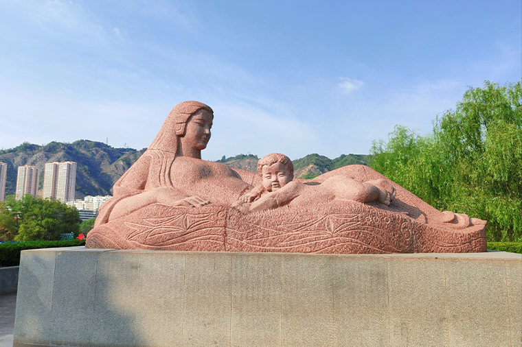位於蘭州黃河風情線上的著名地標,以「母親與嬰兒」為主題,象徵黃河孕育中華民族與華夏文明。雕塑以圓潤柔和的線條呈現母親安詳側臥、懷抱嬰兒的形象,寓意黃河滋養萬物、生生不息。作品以花崗岩雕刻而成,造型溫柔典雅,是蘭州最具代表性的城市象徵之一。遊客可在此漫步黃河岸邊,欣賞壯闊河景與城市風光,感受母親河悠久的歷史文化。