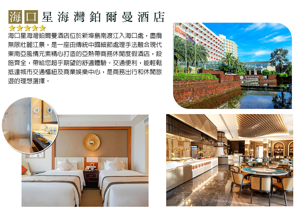 住宿:准5星 海口星海灣鉑爾曼酒店 或同等級