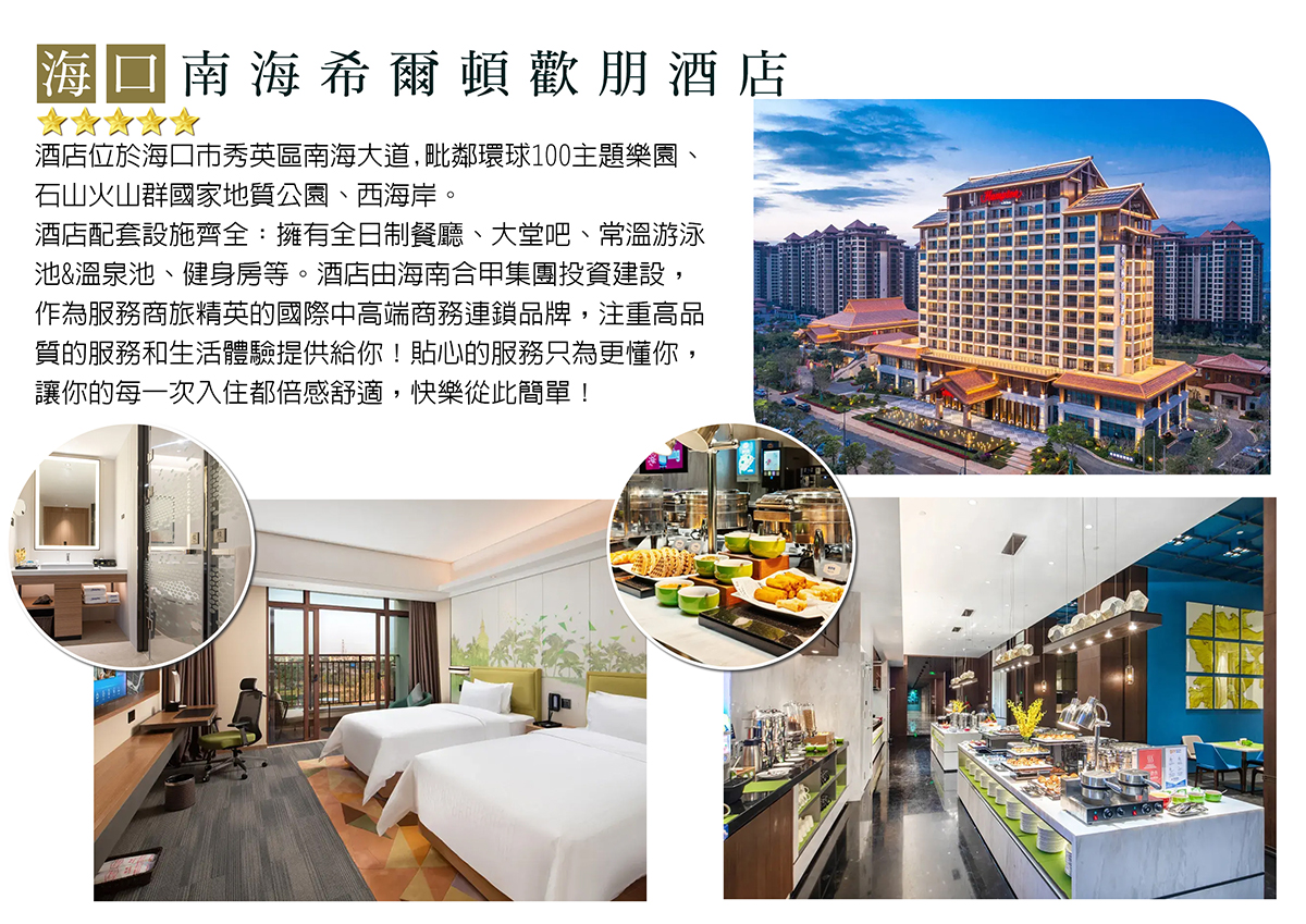 住宿:准5星 海口南海希爾頓歡朋酒店 或同等級