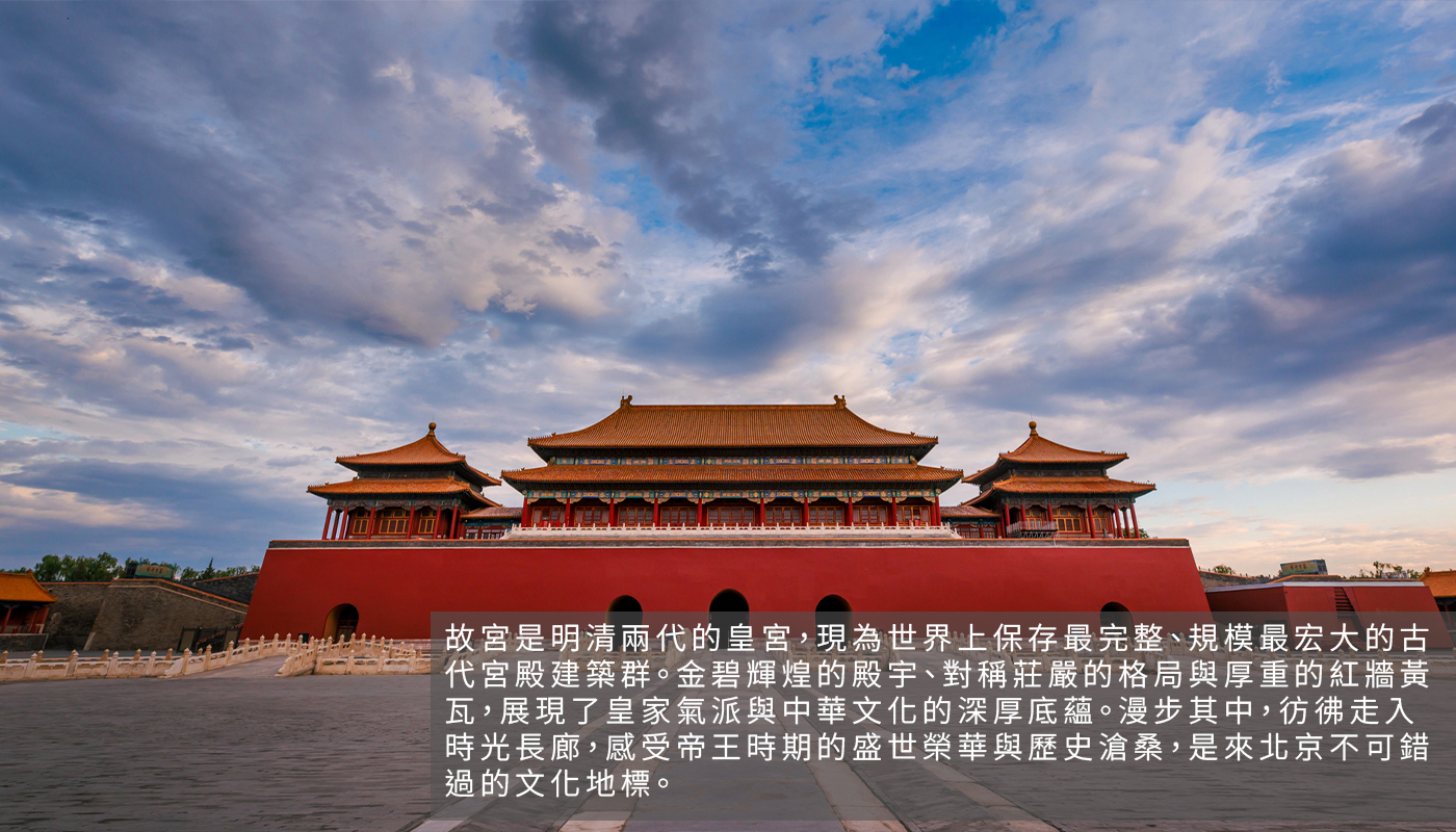 紫禁城,這座五百年皇權的象徵,是世界上保存最完整的古代宮殿建築群。走過金碧輝煌的太和殿、穿越紅牆黃瓦之間,每一步都像踏入歷史長河。感受帝王的威嚴與皇家藝術的精緻,拍下一張張彷彿穿越時空的照片。來北京,怎能不在這裡留下你的足跡?