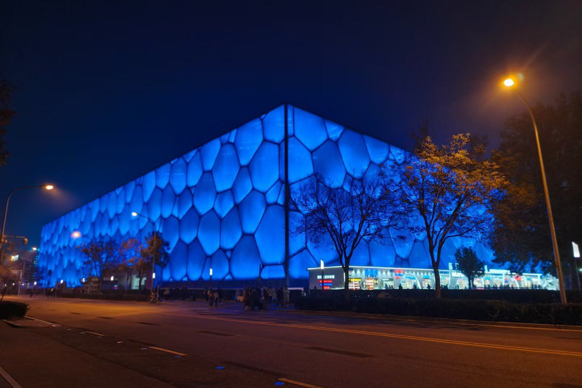 一到夜晚,水立方就化身為夢幻的藍色水晶宮!外牆燈光流動變幻,像水波在呼吸,倒映在水面上閃閃發光。走近一看,整棟建築晶瑩剔透,極具科技與藝術感。這裡是情侶約會、旅人拍照的熱門地,隨手一拍都是大片。夜遊水立方,就像走進一場閃耀的光影夢境。