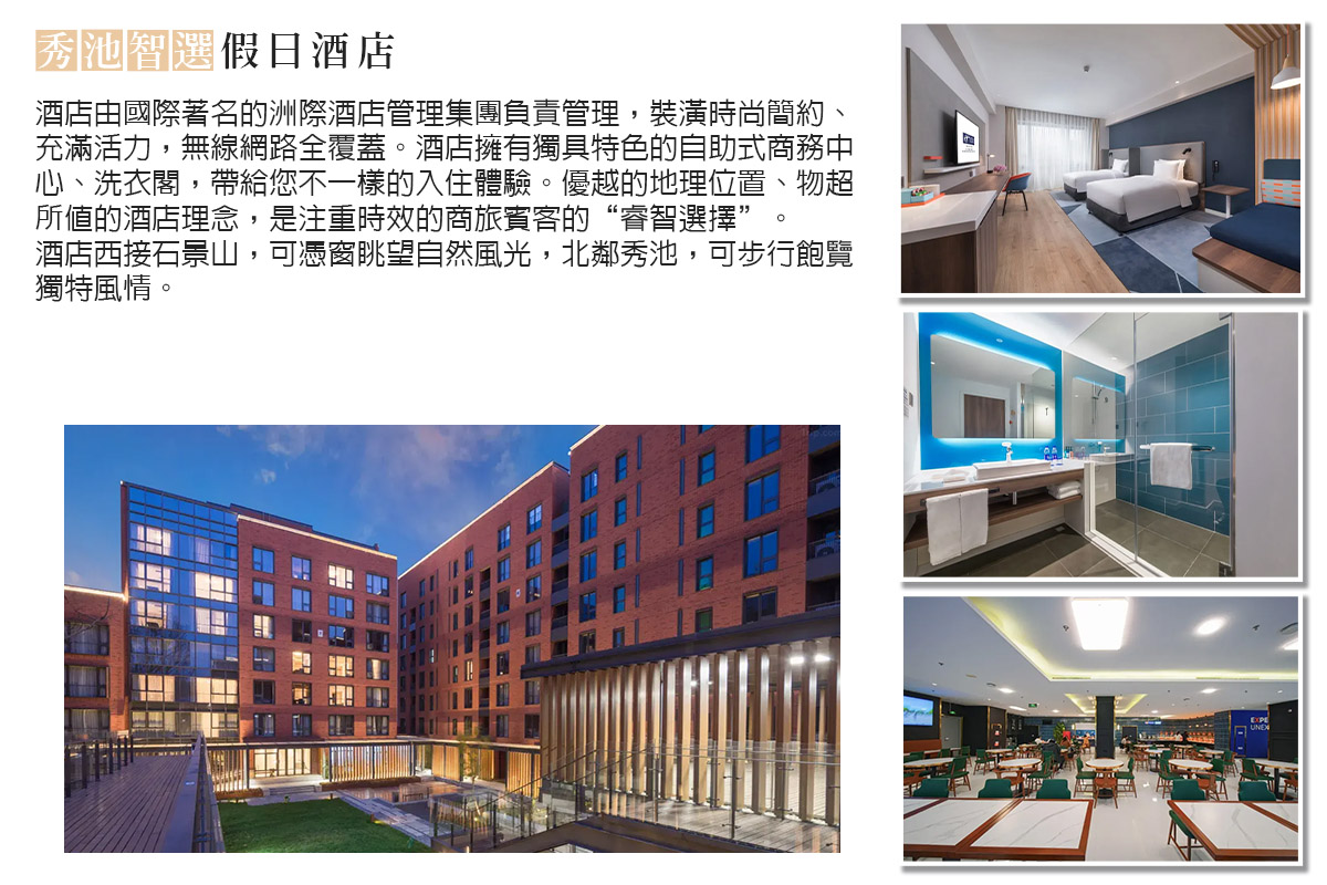 住宿:秀池智選假日酒店或首鋼工舍智選假日酒店 或同等級