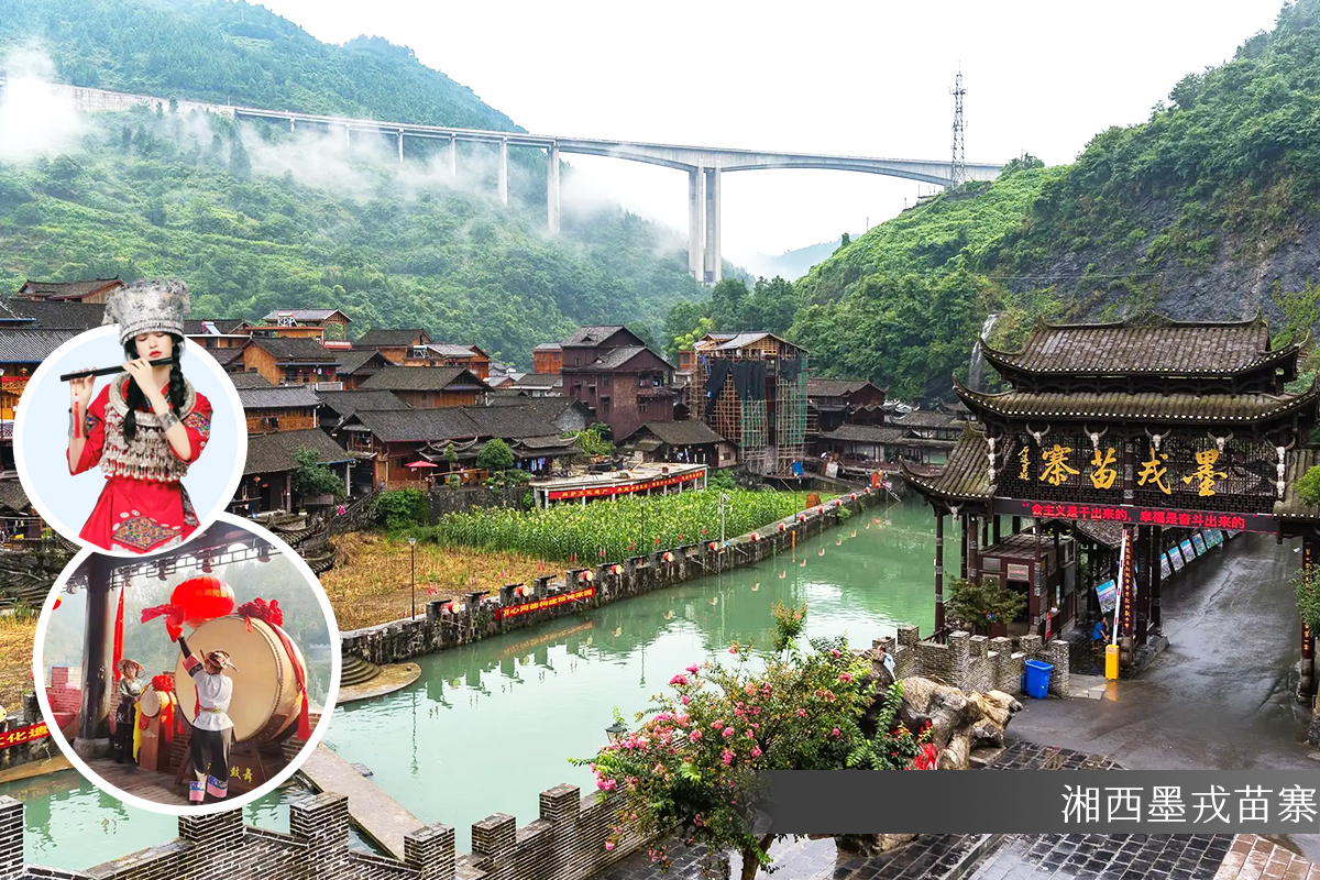 墨戎苗寨位於湘西花垣縣,以濃厚的苗族文化聞名。寨中吊腳樓依山傍水,村落古樸自然。遊客可觀賞苗族歌舞、銀飾工藝與傳統婚俗表演,還能品嘗苗族特色佳餚。這裡是了解少數民族文化的理想地點。