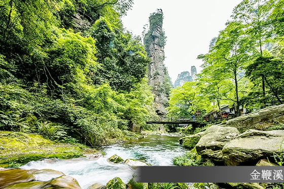 金鞭溪蜿蜒於張家界峰林之間,全長約7.5公里,被譽為「世界最美的峽谷溪流」。沿途溪水清澈見底,潺潺流水伴隨翠竹與奇峰,宛如天然畫卷。步行於小徑之上,時常能遇見獼猴群自在穿梭,增添野趣。金鞭溪不僅空氣清新,還以靜謐氛圍聞名,是遊客體驗張家界自然魅力與悠然步調的最佳路線。