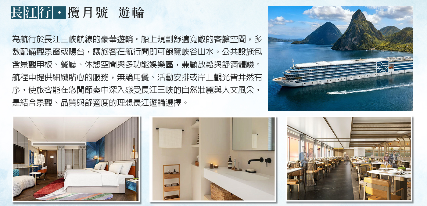 超五星.長江攬月號|8天自由行.重慶x長江三峽x宜昌-豪華郵輪行(上水) |