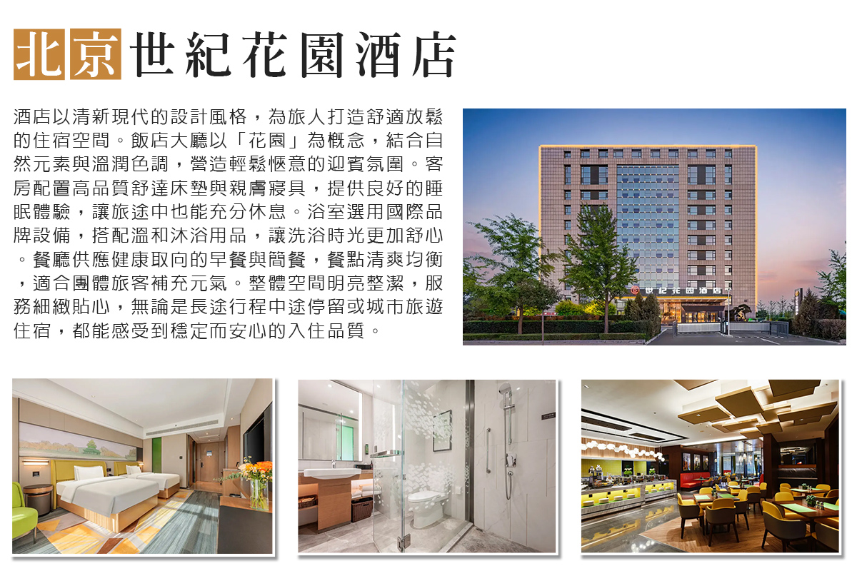 【四★ 北京 得瑞酒店】或【四★ 北京世紀花園酒店】 或同級