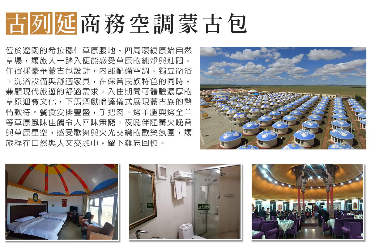 【特別安排 古列延商務空調蒙古包】 或同級