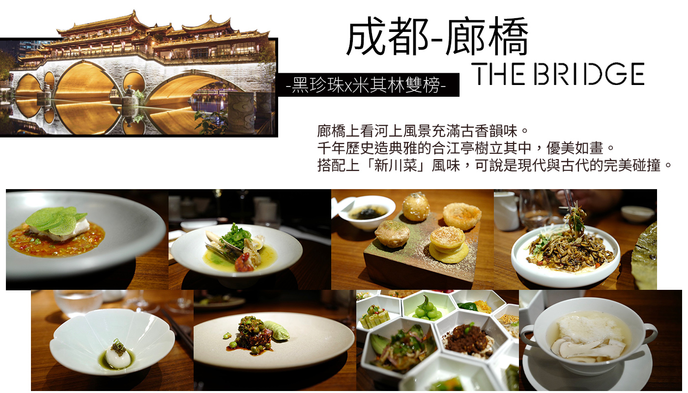尊重川菜本質,但賦予新觀點,是江振誠在廊橋的任務。“江振誠主廚”讓廊橋保留了傳統技法,以經典調味為主軸,糅粹法餐技巧,用他獨到的國際視野去呈現川菜的另一面,是“一菜一格,百菜百味”的完美展現。 多元食材交匯融通,彼此獨立但又無比契合,色、香、味、型及古典又現代,這就是廊橋為每一位有緣人帶來的舌尖風味之旅。