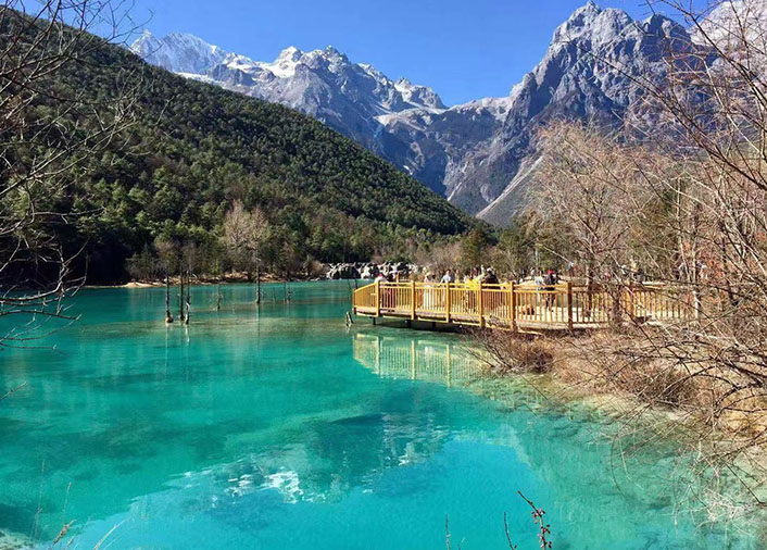 玉龍雪山海拔 5596 公尺,是納西族心中的神山,也是麗江最具代表性的自然景觀。搭乘索道登山,可近距離欣賞皚皚雪峰的壯麗景色。雪山腳下的藍月谷,湖水因礦物質而呈現夢幻的湛藍色,被譽為「小九寨」,在藍天白雲映襯下如詩如畫。這裡集壯闊與浪漫於一體,是麗江旅程中不可錯過的地標。
