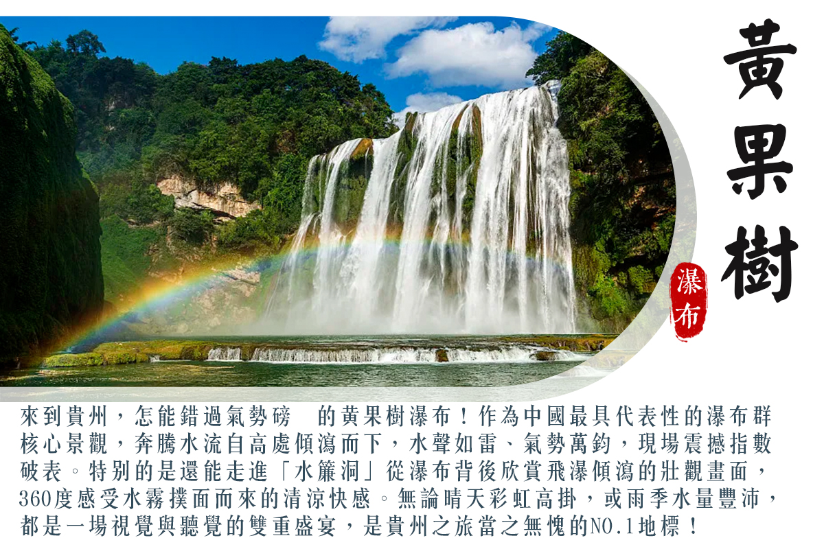 貴州逸境8日·自由行|天河潭x萬峰湖x黃果樹x千戶苗寨|景區遊船x苗服體驗|四鑽級飯店 |