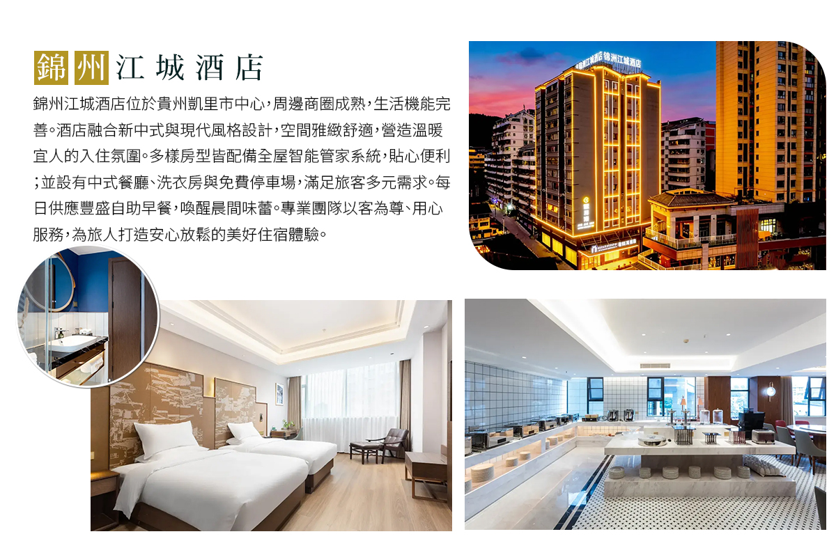 ✦ 貴州多為山區地形,氣候濕潤,早晚溫差較大,部分景區天氣變化快速,建議攜帶保暖外套、薄長袖衣物及雨具(雨傘或雨衣),並備妥個人習慣性藥物,以因應天候與旅途所需。